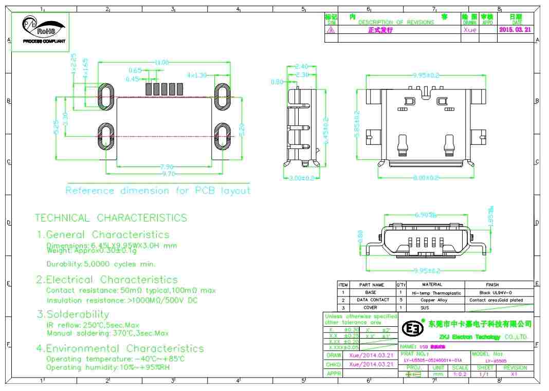 产品为5PIN H1.6  4DIP沉板型设计